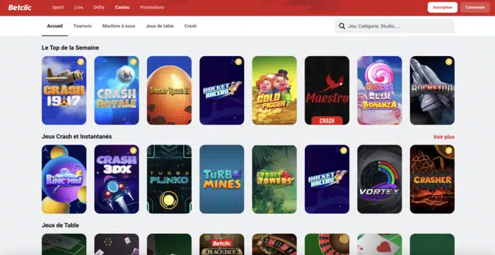 De nombreux jeux sont proposés. Machine, jeux de tables et mêmes des tables en direct live. Les jeux les plus populaires comme les crash sont évidemment de la partie.