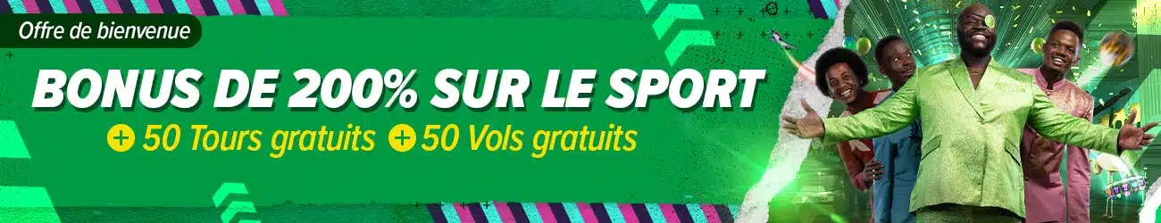 Premier Bet t’accueille au Cameroun avec une offre de bienvenue qui triple littéralement ton premier dépôt. Le principe est simple : tu t’inscris, tu effectues un premier dépôt, et tu reçois 200 % de ce montant en bonus sport, dans la limite de 10 000F CFA.